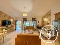 Posiada liczne zacienione strefy relaksu i piękne tarasy. Wnętrze obejmuje przestronny salon z kominkiem przy wejściu z wysokimi sufitami katedralnymi, jadalnię, dużą niezależną kuchnię, 2 sypialnie na parterze z łazienką i antresolę. Nieruchomość uzupełnia duża przestrzeń do przechowywania, a także parking zewnętrzny i ogrodzony ogród o powierzchni 200 m, który jest zadbany. Właściciel sprzedaje ten zachwycający dom w pełni umeblowany i ze wszystkimi urządzeniami elektrycznymi.
