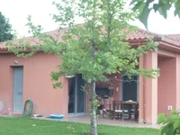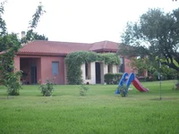 Obiekt położony jest na jednym poziomie, na bujnej powierzchni 2,400 m ², wypełnionej 30 drzewami owocowymi i placem zabaw dla dzieci - idealnym miejscem dla rodzin i miłośników przyrody. Architektura w stylu śródziemnomorskim obejmuje dach z kafelkami, zacienione werandy i bujną roślinność otaczającą wejście.