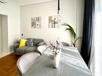 Apartament posiada klimatyzację, panele słoneczne, podgrzewacz wody, ramy aluminiowe, certyfikat energetyczny: B, podłoga: płytki i drewno. Stan: odnowiony. Jest dogodnie położony w pobliżu metra, tramwaju, transportu publicznego, parku, supermarketu i rynku.