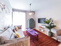 Mieszkanie ma przedni układ. Wspaniały widok na miasto, las otwiera się od okien. Są: klimatyzacja, markizy, ogrzewanie. Właściciele opuszczą meble ze sprzedażą. Budynek ma windę. Jest zainstalowany system alarmowy. Dodatki wliczone w cenę: ogród.
