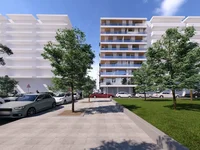 Znajduje się na 5. piętrze nowego budynku, będącego częścią innowacyjnego projektu mieszkaniowego w Salonikach, zaprojektowanego w celu zapewnienia wysokiej jakości i zrównoważonego stylu życia.