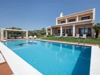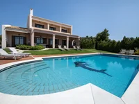 The heart of the villa is its magnificent outdoor space. A large 70 m² ceramic-tiled pool is surrounded by shaded relaxation areas with sun loungers and umbrellas, where you can soak up the Mediterranean sun while admiring the sea. Landscaped gardens with an automatic irrigation system create the atmosphere of a Mediterranean oasis, and 50 olive trees on the property create a truly Cretan idyll. An outdoor barbecue area with patio furniture, an outdoor shower, and two garages complete the image of a home ideal for relaxing and entertaining. The villa's interior spaces impress with their thoughtfulness and elegance. Large balconies overlooking the sea, a fireplace for cozy evenings, recessed lighting, and shuttered windows create an atmosphere of exquisite comfort. A home theater and private gym take this residence to a new level of luxury.