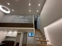 Całkowicie odnowiony w 2025 roku, apartament posiada imponującą wysokość sufitu, ciepłe drewniane podłogi, projektanckie oświetlenie i nowoczesne pływające schody prowadzące do poddasza.
