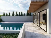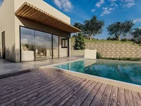Całkowita powierzchnia brutto sięga 130 m2, włączając werandy przednie i tylne. Na zewnątrz znajduje się prywatny ogród i prywatny basen, zapewniając prywatność i spokojne środowisko życia.