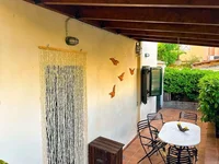 Podłogi z kafelkami Cotto, ramy aluminiowe z podwójną szybą i ekranami owadów, autonomiczne ogrzewanie oleju na podłogę, niezależna kotłownia, trójenergetyczne słoneczny podgrzewacz wody, instalacja naczyń satelitarnych, sieć światłowodowa, ogród z automatycznym nawadnianiem, odkryty parking, dwa zewnętrzne pomieszczenia magazynowe i system alarmowy podłączony do firmy ochroniarskiej.