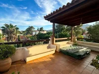 2nd Floor: Master sypialnia z łazienką i bezpośredni dostęp do dużego tarasu z trzema built- w sofy i pergola płytek, oferuje widoki na górę Dionysos.