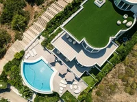 Opis pomieszczeń zewnętrznych i wewnętrznych: Ta 400 m2 willa znajduje się na 1000 m2 powierzchni, w otoczeniu bujnej zieleni z widokiem na morze. Na zewnątrz znajdują się czyste linie i nowoczesne krzywe, z dużymi powierzchniami szklanymi, które pozwalają na zalanie naturalnego światła. W gustownie zaprojektowany basen oferuje prywatny relaks, a na zewnątrz obejmuje przestronne tarasy i ogród, który harmonizuje z krajobrazem.
