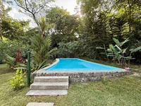 Ta pokojowa oaza jest 2-piętrowym cementowym domem z 3 sypialniami, dużym tarasem na 2 piętrze, 2 wannami. Dom położony jest na pięknej krajobrazu + / - 1.19 akrów z basenem, ekspansywna kuchnia na zewnątrz z siedzeniem i leżakiem otoczony drzewami owocowymi i kwiatami. Z ganku widać rzekę. 1 kilometr od Villas w Pico Bonito.