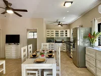 Ten nowoczesny 2 apartament beton domu siedzi na 0.139 akrów i jest wielką szansą inwestycyjną. Najwyższy poziom posiada 2 sypialnie, 1 łazienka i przestronny taras, gdzie można cieszyć się tropikalne ogrody i spokój East End Roatan. Dolny poziom posiada 1 sypialnia i 1 kąpiel i dobry rozmiar ganku. Ten dom jest idealny jako rezydencja w pełnym wymiarze czasu, długoterminowy lub Airbnb wynajem. Jest w pełni umeblowany z drewnianymi meblami, kuchnia posiada wszystkie urządzenia, nawet zmywarkę do naczyń. Jest częścią Diamond Hill Resort, prestiżowej społeczności na wyspie East End of Roatan. Ten rozwój ma jeden z najpiękniejszych basenów nieskończoności z barem i wybitnych widoków. Underground Narzędzia i utwardzone drogi z 24 / 7 bezpieczeństwa. W pobliżu znajdują się piękne plaże, takie jak Paya Bay i Camp Bay.