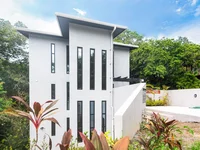Step inside and be greeted by an elegant open concept design that seamlessly connects the stylish kitchen, spacious living area, and expansive lower balcony overlooking the lush jungle. The kitchen boasts a sleek island and high end appliances, while the living room's warm decor and large glass doors invite light, air, and views of paradise.