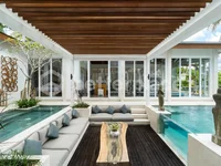 Sercem willi jest otwarta koncepcja życia, jadalnia i kuchnia, z wysokimi sufitami i ciepłym drewnem kończy tworzenie miejsca do zbierania. Pełna kuchnia sprawia, że posiłki w willi łatwo, niezależnie od tego, czy przygotowujesz szybkie śniadanie lub hosting obiad. Jest też dedykowana przechowalnia, toaleta dla gości i suszarka do włosów na długie pobyty. Wyjdźcie na zewnątrz do zatopionego salonu, położonego pomiędzy basenem nieskończoności a obszarem jacuzzi - idealne do rozmowy lub po prostu odwijania się od wody. Cztery leżaki do opalania, hamak i obszyte obrzeża ogrodu dodatkowo wydłużają przepływ willi na zewnątrz.