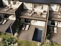Udogodnienia kompleksu: prywatny basen (5 × 2,4 m / 6 × 2,5 m) w każdej willi, przestronne tarasy z miejscem do grillowania, strefa SPA i zielone tereny krajobrazowe, parking i system zbierania wody deszczowej, pełne wyposażenie i klimatyzacja