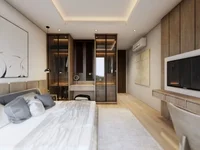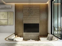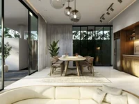 Built on 172.6 sqm of land with a 174.5 sqm two-level design, the villa features thoughtfully planned interiors that maximize space and natural light. The layout includes two spacious bedrooms and two elegant bathrooms with high-quality fixtures, rain showers, and modern single-sink vanities. The heart of the home is an enclosed sunken living area that flows into the dining space and a fully equipped modern kitchen, creating a warm and functional environment for everyday living and entertaining.