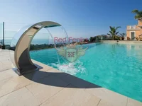 Вилла «Аврора» выполнена в неоклассическом стиле, районе Соларо, зона вилл. Вид на море и чуть города До центра 3 минуты на машине. Вся инфраструктура рядом. Вилла находится близко к городу, пляжам и ресторанам. Тихое и спокойное резиденциальная зона ВИП Санремо. Новая вилла 500 кв.м, построенная в течение двух лет, дата окончания -2014. Территория сада 2000 кв.м, на двух уровнях. На вилле был проведен капитальный ремонт с заменой оснащения для повышения комфорта и применения самых передовых технологий Первый уровень: открытая парковка, гараж на две большие машины с двумя автоматическими воротами, обеденная открытая зона с автоматической, выдвигающейся крышей, водный мраморный каскад, зона отдыха: сад из роз со старинным фонтаном привезенным из Флоренции, дорожки выложены из мрамора. Водный каскад замкнут с бассейном, вода циркулирует постоянно без дополнительных затрат. Второй уровень: бассейн с переливом и подогревом, и что очень важно с морской водой. Фруктовый сад, оливковая аллея, зона с тропическими деревьями, зона с тремя фонтанами из натурального камня, отдельно стоящее помещение под садовое оборудование. Скамейки дизайнерские. Десять лежаков дизайнерской работы, каркас из нержавейки, стоимость каждого лежака 7 000 евро. Два больших жезлонга, каркас из нержавейки. В бассейне фонтан с переливом. Есть душ. Бассейн сделан по последним технологиям. Эффект «морской воды с добавлением минералов» - система гидролиза. Самостоятельно отслеживает количества высвобождаемого хлора из соли, автоматическая подача хлора. Автополив по всему участку. Сигнализация по периметру участка и дома. Видеорегистраторы , работающие 24 часа в сутки. Вилла состоит из трех этажей. Первый этаж: гостиная, столовая, кухня, гостевой с/узел, независимый апартамент, состоящий из спальной комнаты, объединенной с кухонным углом, ванной. Из первого этажа выход к гаражу, зоны сервиса: прачечная, морозильные камеры. Технической зоны: обслуживание бассейна, нагревающие котлы. Между этажами есть лифт, а также мраморная лестница, соединяющая все три этажа. Из гостиной выход на террасу, где находится летняя столовая. Дизайн гостиной: архитектор Читерио, картины в столовой автора Миморотела. Вилла продается полностью с мебелью, что бы не нарушать общий стиль. Во всем доме полы и лестница сделаны из мрамора Каррара. Кухня последняя коллекция Берлонни. Второй этаж: четыре спальни, каждая из которых имеет свою приватную ванную и встроенные шкафы. Из всех комнат собственный выход на террасы к бассейну. Вид на море из всех комнат. Вид на море из ванной комнаты. Три спальни имеют приватные большие террасы. Третий этаж: спальня с бодуаром, ванной комнатой и встроенными шкафами. Итого: 6 спален, 7 ванных комнат, гостиная, столовая и кухня. Мебель в комнатах, кухня, садовая мебель и все остальное продается вместе с виллой. Дополнительные услуги компании: - Проверка юридической чистоты - Юридическое сопровождение сделки с гарантией получения всех документов о праве собственности - Поездки: Бронирование авиа-билетов по минимальной цене - Пост-продажный сервис – решение любых вопросов по обслуживанию недвижимости