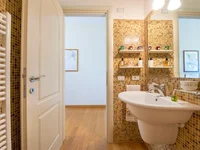 Cudowne schody wykonane z czerwonego marmuru w Weronie prowadzą na górne piętro, które jest podzielone na trzy bardzo duże i jasne sypialnie ( 2 z nich to pokoje dwuosobowe ) z łazienkami i pomieszczeniem do prasowania. Wszystkie widoki są bardzo piękne i imponujące; na piętrze znajduje się balkon o powierzchni 10 m ² z pięknym widokiem na jezioro.