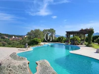 The Villa, architectonical masterpiece of the costa Smeralda, is located in the spectacular scenic position close to the exclusive Pevero Golf Club in front of golf hole no.18 and just 300 meters from the beaches of Cala di Volpe. The Villa is composed by wide internal and external places. Huge windows it is possible to appreciate the breaht-taking landscape which extend from Cala di Volpe to the island of Tavolara. The living room, all with sea view, is huge and comfortable, separate dining room and separate kitchen from which it is possible to reach the veranda with sea view. The Villa is composed by 5 bedrooms, 6 bathrooms and a internal Patio, a guest room and utility rooms; a nice garden with pool and Jacuzzi , toy game area and wide parking area. Cala di Volpe is the most romantic and spectacular place of the Costa Smeralda, where blue color becomes turquoise-blue, emerald-green and strong blue.