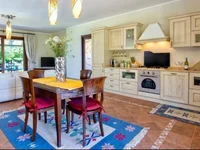 Na dolnym piętrze znajduje się drugi salon z otwartym planem, z kuchnią i przestronnym salonem, dwie sypialnie i inną łazienką z prysznicem i oknem. Istnieje również oddzielny dom z grill, piec drewniany, kuchnia letnia i łazienka zewnętrzna, idealne dla gości i rodziny. Na ulicy znajduje się ośmiokątna altana otoczona szklanymi ścianami, która może pomieścić do dwudziestu osób - idealne miejsce na obiady na świeżym powietrzu. Wspaniały oświetlony basen tworzy wyjątkową atmosferę, zamieniając każdy wieczór w niezapomniane wydarzenie. Ponadto istnieje platforma, która może pomieścić do piętnastu samochodów, zapewniając komfort dla wszystkich gości.