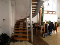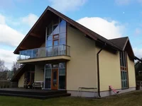 Дом в Вецаки на берегу водоема в 200 м от моря (первая линия от моря).Площадь дома 260 кв.м.На первом этаже: просторная гостинная (двойной свет), объединная с кухонно.