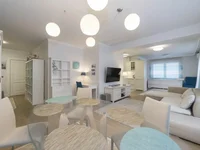 - Spacious living room with built-in kitchen and all necessary appliances;