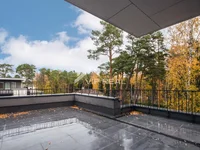 Penthouse in the modern residential complex "Turaidas Quarter" next to Jomas Street.The apartment consists of a corridor, a living room combined with a kitchen and access to the terrace, two bedrooms, two bathrooms, wardrobe. Big terrace across the all apartment.  The apartment is fully furnished, there are all necessary household appliances.The gated complex has underground parking and a children's playground. There is video surveillance and a concierge. Nearby there is a developed infrastructure - shops, cafes, restaurants. new building, fully furnished, exclusive furniture, built-in kitchen, built-in furniture, fireplace, floor heating, secured area, well-kept area, territory highlighting, underground parking, internet, satellite TV, lift, video surveillance, security post, concierge, well-developed infrastructure, fenced area, near the park, near sea.