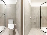 Układ: - korytarz z przestrzenią dla budynku w szafie, - łazienka z prysznicem i miejsce do podłączenia pralki, - całkowita powierzchnia mieszkalna 20.87 m2, z miejscem na meble kuchenne i wyjście na balkon.