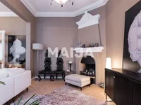 Elegant four-room grand-facade residence with tall 3.70 m ceilings, arched windows, and a functioning fireplace.