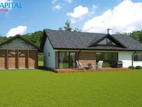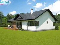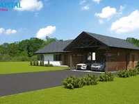Nowoczesny projekt klasycznych form i objętości jednego mieszkania mieszkalnego. Dom jest zaprojektowany z jednego piętra, stoku dachu, obok oddzielnego dachu dla 2 samochodów, i duży magazyn w dachu. Na pierwszym piętrze domu znajduje się przestronna wspólna kuchnia - pokój dzienny, 3 sypialnie (jeden z szafą), pokoje pomocnicze: sala, pokój, 2 łazienki, kotłownia. Ściany są przeznaczone do budowy domu przez cegły. Wykończenie fasady budynku - malowane na zamówienie, połączone z wykończeniem z naturalnego drewna. Ogrzewanie domu - pianka polistyrenowa.