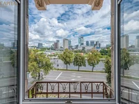 - Lekki i przestronny apartament w pobliżu rzeki Neris z wielkim wizerunkiem starego miasta i wieżowców w Wilnie;