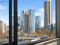 - Panorama miasta z drapaczami chmur otwiera się przez okna.