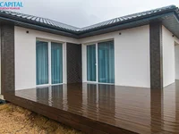 Dom jest wyposażony we wszystkie szczegóły, naturalne i wysokiej jakości materiały zapewniają komfort i estetykę. Lekki salon, kuchnia i jadalnia z dużymi oknami tworzy przytulną atmosferę i pozwala cieszyć się naturalnym światłem przez cały dzień. Z salonu można dostać się na taras - idealne miejsce na odpoczynek lub czas z rodziną do eskorty słońca.