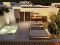 Cechą charakterystyczną tej rezydencji jest prywatny taras na dachu, który obejmuje nieskończenie krawędź Jacuzzi i stylowy salon, idealny do rozrywki lub odwijania, a jednocześnie cieszyć się panoramicznym widokiem na nabrzeże. Oddana połowa kąpieli na dachu zwiększa wygodę dla gości.