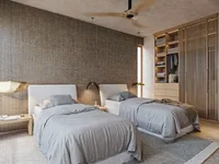 Wysokie sufity i szerokie drzwi przesuwne tworzą bezszwowy przepływ na zewnątrz, wypełniając dom naturalnym światłem i bryzą morską. Podstawowy apartament otwiera się bezpośrednio na taras, podczas gdy dodatkowe sypialnie oferują hojną przestrzeń i prywatność.