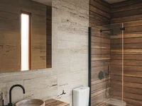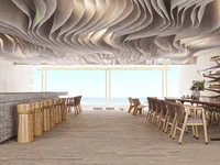 Do materiałów wewnętrznych należą: naturalny marmur trawertynowy, beżowe granitowe blaty oraz tropikalna kabineria z drewna twardego, połączona z eleganckimi dotykami, takimi jak mury z akcentem juty i matowe czarne oprawy. Każdy szczegół jest wybierany, aby odzwierciedlać otaczający krajobraz i promować poczucie spokoju i połączenia.