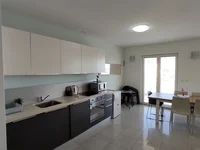 The first apartment has two bedrooms and one bathroom. The large open space includes a spacious living and dining area, and a fully equipped linear kitchen. Furthermore, there is a large corridor with plenty of storage spaces and cupboards. The living area exits on a beautiful terrace featuring stunning sea views. The total area of the apartment is 75m2 and the price is 187.500 Euro.
