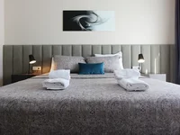 Dwupokojowy apartament z wygodnymi udogodnieniami: dwie sypialnie, łazienka, pokój dzienny połączony z jadalnią i tarasem. Apartament posiada dużą przestrzeń na dach - 84 m2, z zieloną powierzchnią, jacuzzi i solarium, co zapewnia możliwość spędzenia przyjemnego czasu w lecie, ciesząc się panoramicznym widokiem na morze!