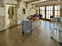 Na pierwszym piętrze znajduje się korytarz, salon, jadalnia, kuchnia z włoskimi meblami i budynkiem w Bosh urządzeń, sypialnia, łazienka. Garaż, kotłownia z kotłem na 300 litrów, pralnia, letnia jadalnia, dostęp do basenu i podwórka