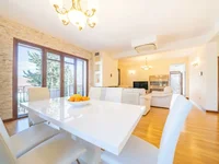 Parter jest połączony wewnętrznymi schodami do pierwszego piętra, które ma osobne wejście. Na pierwszym piętrze znajduje się przestronny salon z dużą kuchnią, jadalnią i salonem z budynkiem w kominku dla dodatkowego ciepła i romantycznej atmosfery. Dodatkowo na tym piętrze znajdują się 2 sypialnie, jedna z własną łazienką i galerią, dodatkowa łazienka i taras.