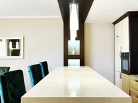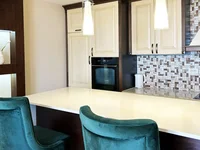 The house is equipped with heated floors. There is a fireplace in the living room. The bedrooms and living room have access to spacious terraces with sea views. The house is equipped with new furniture and all necessary appliances. The interior has been designed. There is a private covered parking space next to the house.