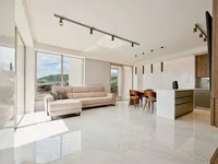 The apartment is situated on the 7th floor of a nine-story building, and the spacious living room in light tones perfectly blends with the elegant furniture and designer decorative elements. The dining area, made of natural wood, organically complements the interior, creating the perfect space for entertaining guests. The kitchen is equipped with high-quality built-in cabinets and a functional kitchen island, meeting all contemporary requirements for practicality and style.