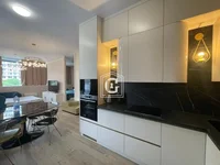 Struktura apartamentu: studio, 1 łazienka, taras. Nowe meble włoskie, zasłony - aksamit, kuchnia - mat z matczyną perłą, panele AGT (Turcja), maszyny - Gorenje. Naprawa wysokiej jakości i drogich materiałów. Rozdziel system. Kompleks mieszkalny segmentu Premium.