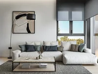 Mieszkanie jest w pełni wyposażone w wyrafinowane meble, szafy na zamówienie i parkiet Tarkett parkietu. Wysokie okna podłogowe zalewają przestrzeń naturalnym światłem, tworząc bezproblemowe połączenie życia wewnątrz i na zewnątrz.