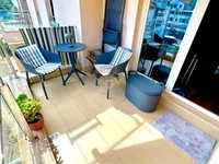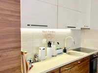 Struktura apartamentu: dwie łazienki z podgrzewaną podłogą, sypialnia z osobnym wejściem, garderoba i toaleta, duża sala (otwarty plan), kuchnia, korytarz z budynkiem w dużej szafie i taras z częściowym widokiem na morze, a także zielony park i miasto. Taras wyposażony jest w markizę z pilotem i czujnikiem wiatru. Istnieje gniazdo do grill, itp.