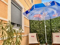 Mieszkanie 61m2 na parterze w dzielnicy Babilija. Apartament posiada 2 sypialnie, salon z kuchnią, łazienkę z oknem, ogromny taras otoczony zielenią, zapewniając pełną prywatność. Apartament posiada nowe meble, w pełni wyposażone (każdy pokój posiada telewizor). 10 minut spacerem do morza, blisko do wszelkiej niezbędnej infrastruktury: szkoły, sklepów.