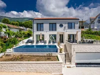 Nowoczesna willa dwupiętrowa z basenem, garażem i przestronną działką w spokojnej okolicy Mrčevac, Tivat. Tylko 5 minut jazdy do lotniska i 10 minut do centrum miasta i Porto Czarnogóra.