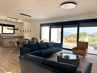 Willa z basenem Powierzchnia całkowita: 183 m ² (z wyłączeniem tarasów) Powierzchnia działki: 488 m ² Prace końcowe w toku (projektowanie krajobrazu + basen) - zakończenie: październik 2025 Nieruchomość z bramą automatyczną, parking dla 2 samochodów Prywatny basen z wykończeniem mozaiki, widok na morze Parter: - Układ planu: kuchnia + jadalnia + salon z panoramicznymi oknami - WC dla gości, budynek w magazynie - Master sypialnia z łazienką i bezpośredni dostęp do basenu