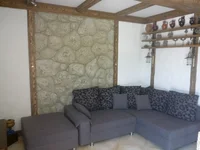 Przestronny i jasny salon i jadalnia, z którego można przejść na południowy taras. W salonie znajduje się rozkładana sofa dla 2 osób i klimatyzacja, TV satelitarna, DVD, stereo. Kuchnia jest dobrze wyposażona, posiada pralnię z pralkami, suszarkami i zmywarkami, lodówką, deską do prasowania i żelazkiem.