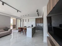 Salon jest urządzony w jasnych kolorach z eleganckich mebli i nowoczesnej dekoracji. Obejmuje on obszar rekreacyjny z wygodną sofą i stylową jadalnią z naturalnego drewna. Nowoczesna kuchnia harmonijnie pasuje do wnętrza, łącząc funkcjonalność i estetykę, z wysokiej jakości built- w szafy i wyspa do gotowania.