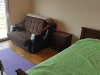 A furnished 2-bedroom apartment is for sale on the 9th floor of an apartment building. Layout: kitchen combined with living room, 2 bedrooms, bathroom and terrace. The sea is 500 meters away. There is a large free parking in the courtyard