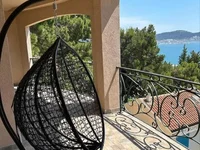 Panorama willi, o łącznej powierzchni 200m2 (tarasy wliczone), znajduje się w malowniczej, spokojnej okolicy, z widokiem na morze. Pierwsze piętro: salon z kominkiem, w połączeniu z kuchnią i jadalnią, drugi salon można przerobić na sypialnię, łazienkę z prysznicem. 2. piętro: sypialnia z łazienką i dwie sypialnie z prysznicem, pralnia. Parter można przekształcić w oddzielne apartamenty (jest gotowy projekt projektowy). Na planie jest niedokończony basen. Do morza można dotrzeć w 5 minut.