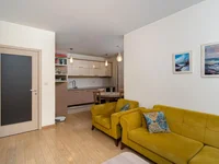 This new, stylish apartment is located in one of the city's most sought-after areas, City Kvart. The property is located in a modern building from the developer Zetegradnja. Situated on the second floor (the building has an elevator), the apartment features a well-thought-out, functional layout: two bedrooms, a modern living room with a separate kitchen area and pantry, a hallway, a walk-in closet, a bathroom, an additional toilet, and a 4 sq m balcony. Northeast-facing, high-quality parquet flooring, and air conditioning in every room. The entire apartment is equipped with a Fujitsu multi-split heating and air conditioning system. The apartment features a contemporary design and is sold furnished. The space is organized in a highly efficient manner, ensuring comfort for both family living and an investment opportunity.